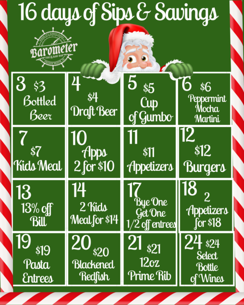 - Dec 14 - 2 kids' meal for $14. (coincides with Brunch with Santa)