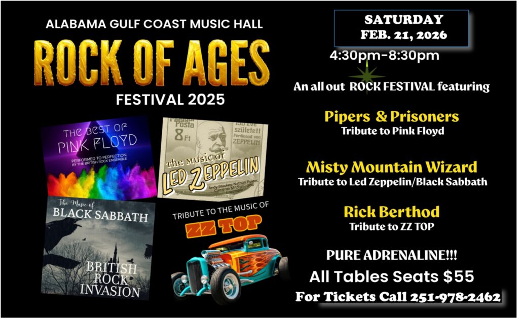 Experience an unforgettable day of rock and blues-rock as multiple bands pay tribute to icons like Led Zeppelin, Black Sabbath, Gary Moore, Santana, Pink Floyd, and ZZ Top, Eagles, Scorpions, and more.